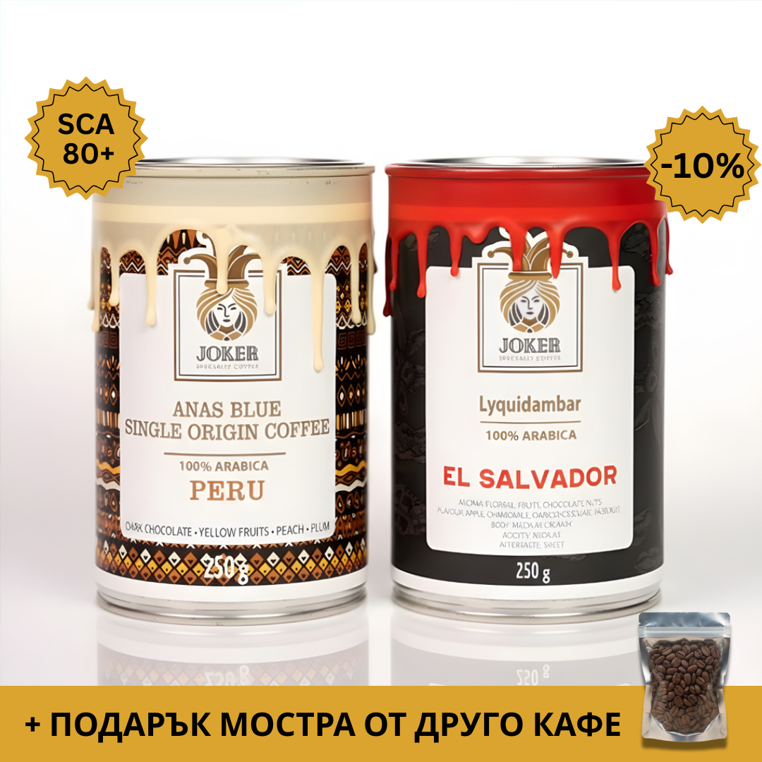 Потопете се в уникалния свят и магията на Централна и Южна Америка. Тази селекция съчетава духа на вулканичните планини на Ел Салвадор с природата и музикалното вдъхновение на Перу. Открийте изтънчен вкус, балансирана сладост и богатство от вкусови нотки. Това е перфектният избор за ценителите, които търсят несравними вкусове и традиции, поднесени директно във вашата чаша.